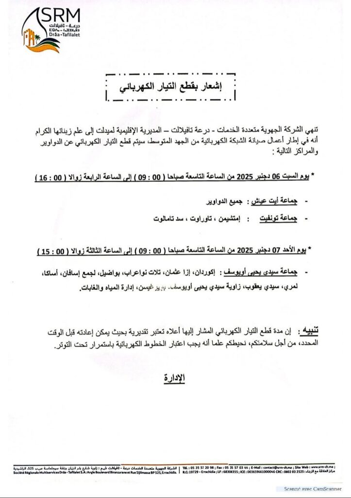 انقطاع التيار الكهربائي في ميدلت و بهده المناطق