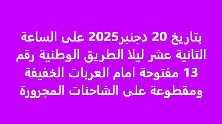 بتاريخ 20 دجنبر 2025، وعلى الساعة الثانية عشرة ليلاً، فإن الطريق الوطنية رقم 13✅ مفتوحة...