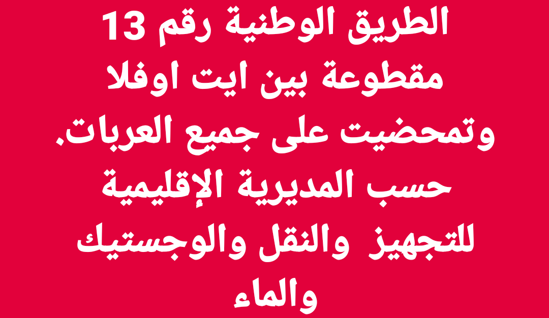 الطريق الوطنية رقم 13 مقطوعة بين ايت اوفلا وتمحضيت على جميع العربات.حسب المديرية الإقليمية للتجهيز...